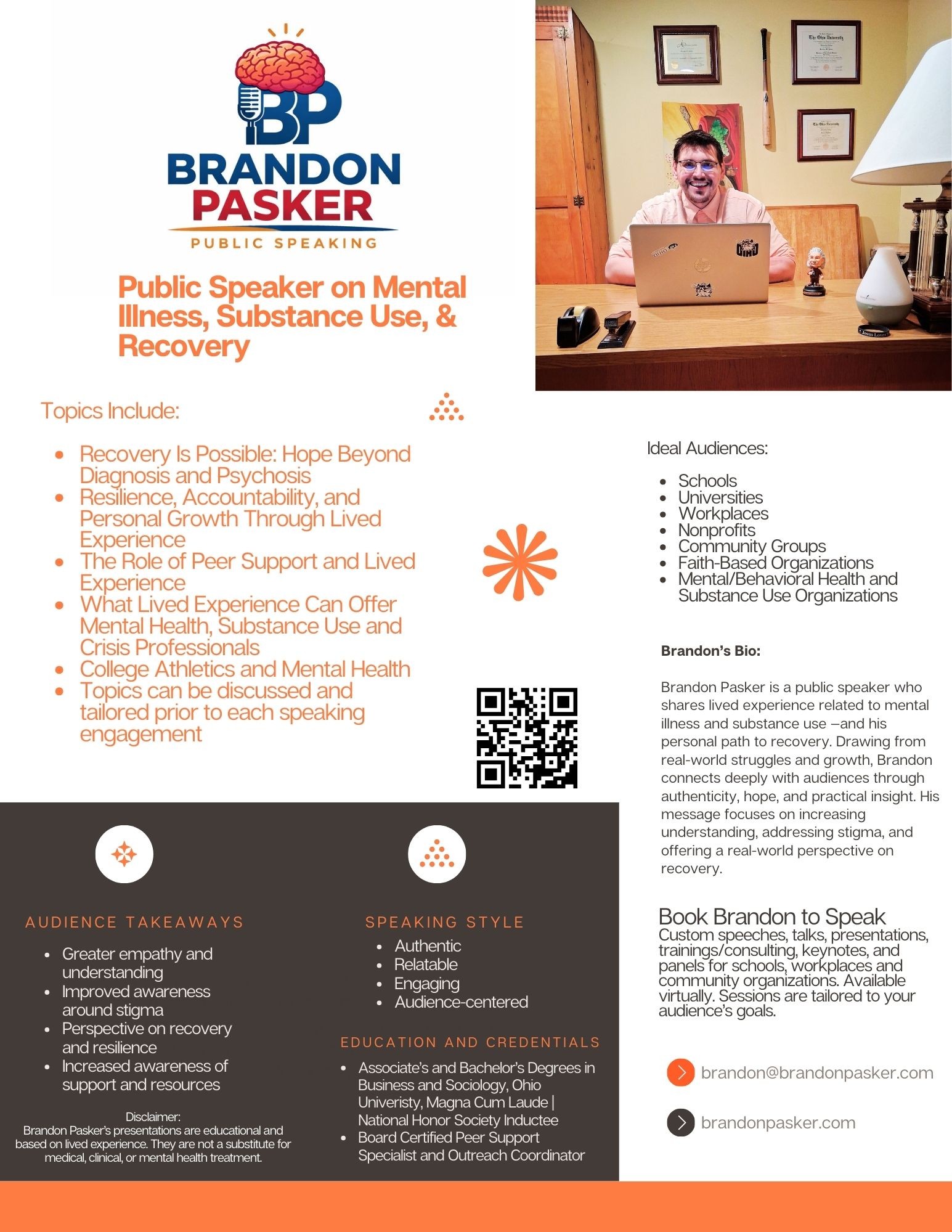 Brandon Pasker’s presentations are educational and based on his own personal experience. They are not a substitute for clinical, medical, or mental health treatment.